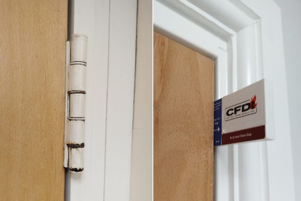 During the survey, our inspector carefully examined each door, identifying any necessary remedial work to bring them up to UK fire door regulations . Photographs were taken of all doors, along with detailed notes on required repairs or adjustments or replacements to ensure they function effectively in the event of a fire.