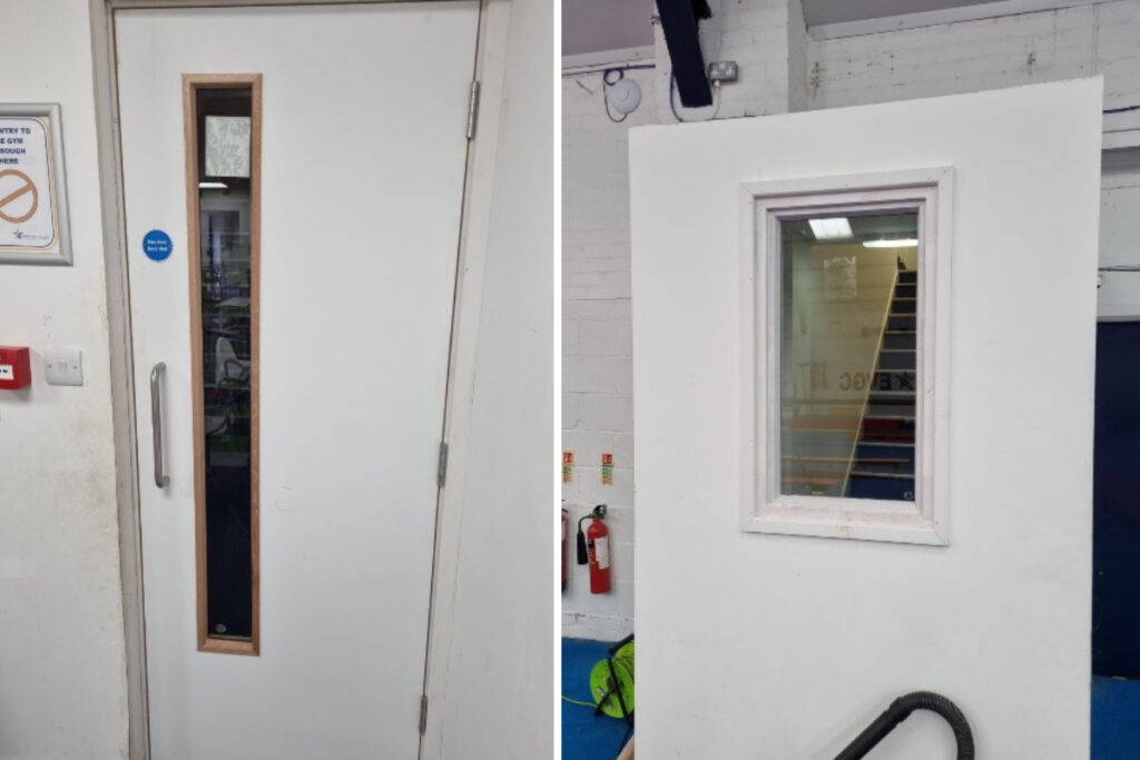 Our team had a rare local job and didn’t have to travel far for todays job . A new FD30 fire door needed installing and also a fire rated window. All products used during the installation are all fire rated and we supply data sheets for the products. Once the team was all complete the office supplied all certification and sign off sheets.